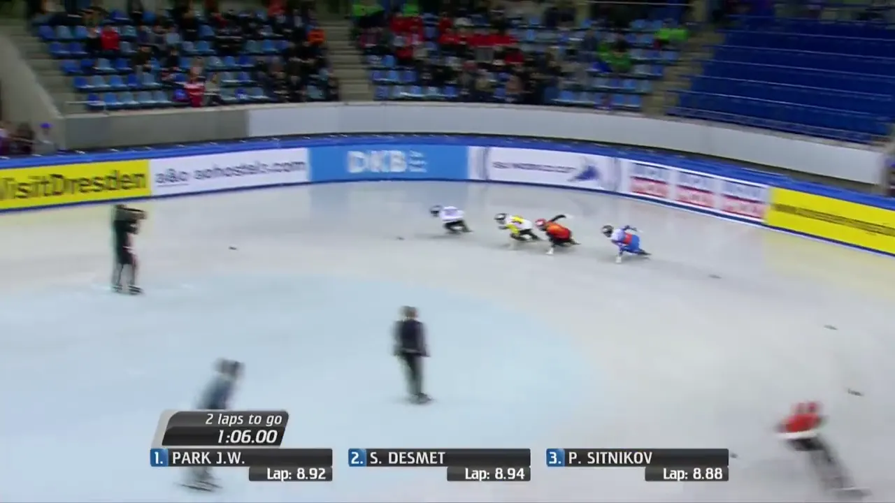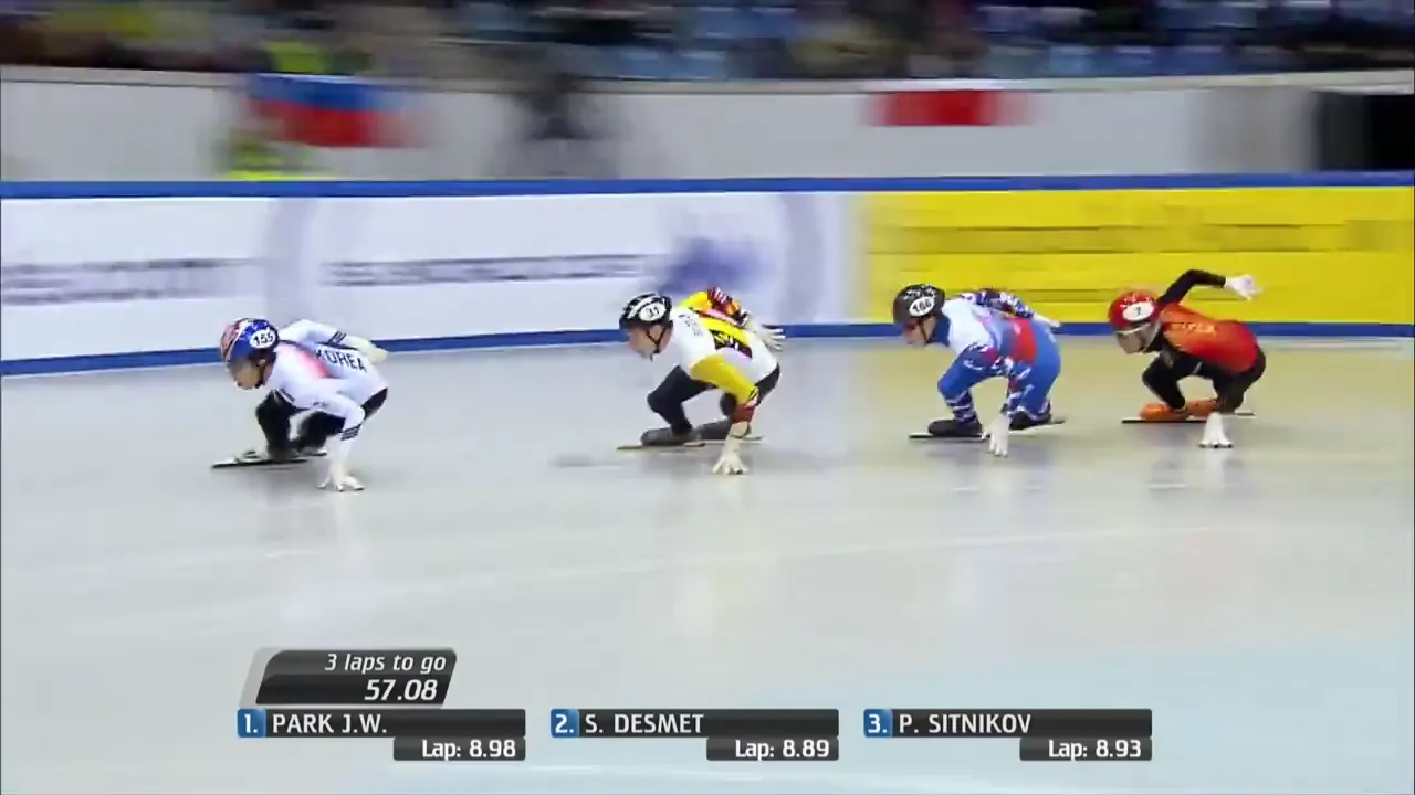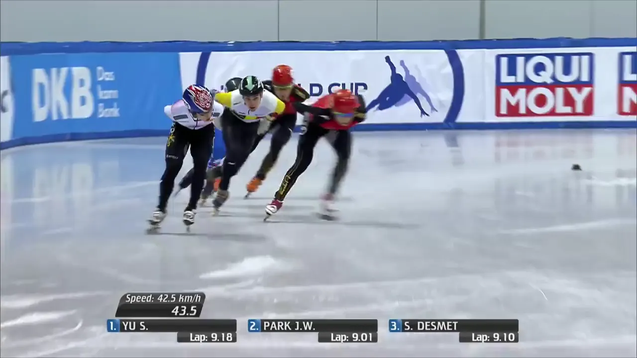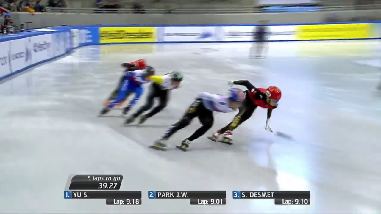 파벨 선수의 인코스로 4등으로 밀린 데스멋 선수.