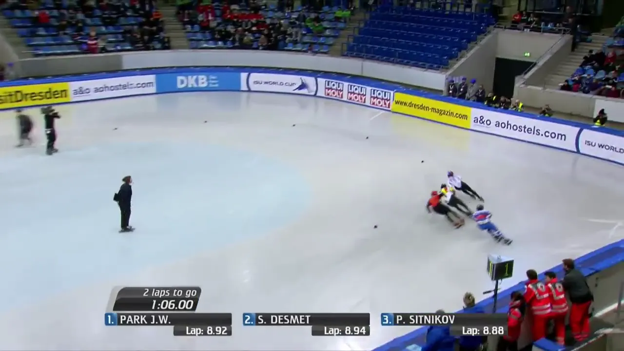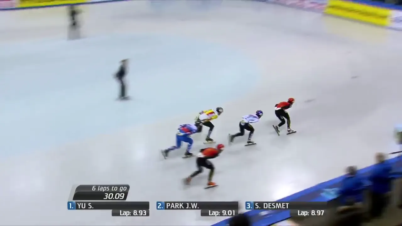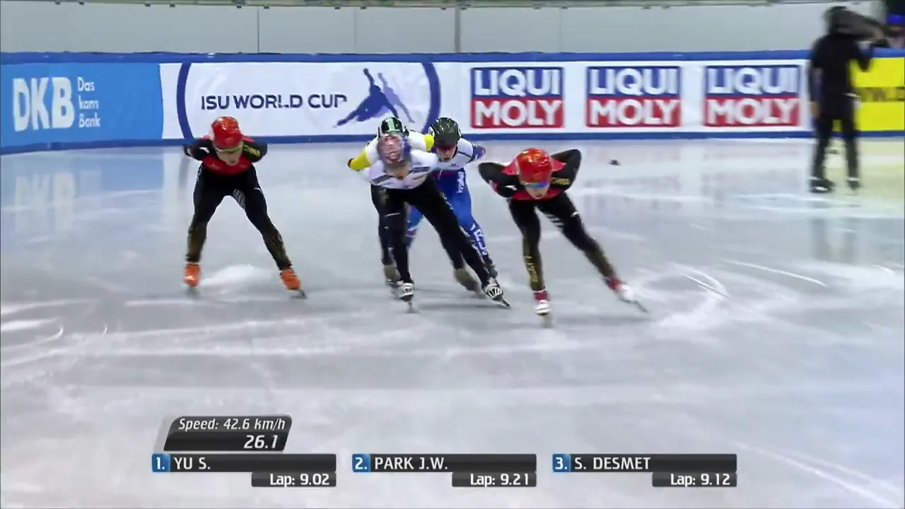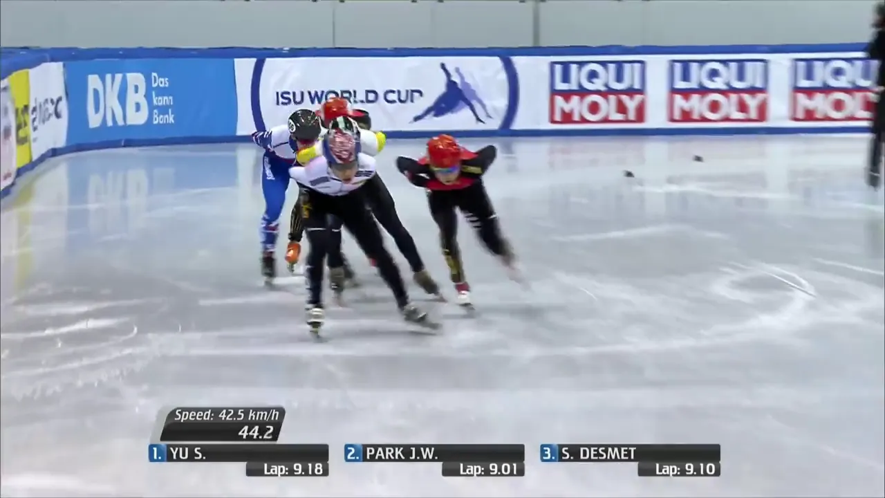 파벨 선수의 인코스로 4등으로 밀린 데스멋 선수.