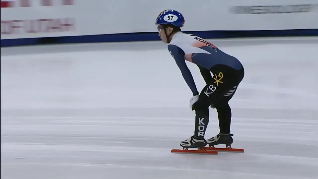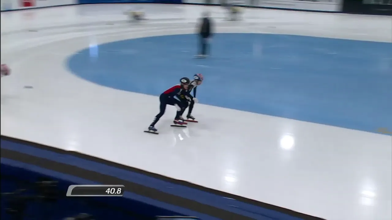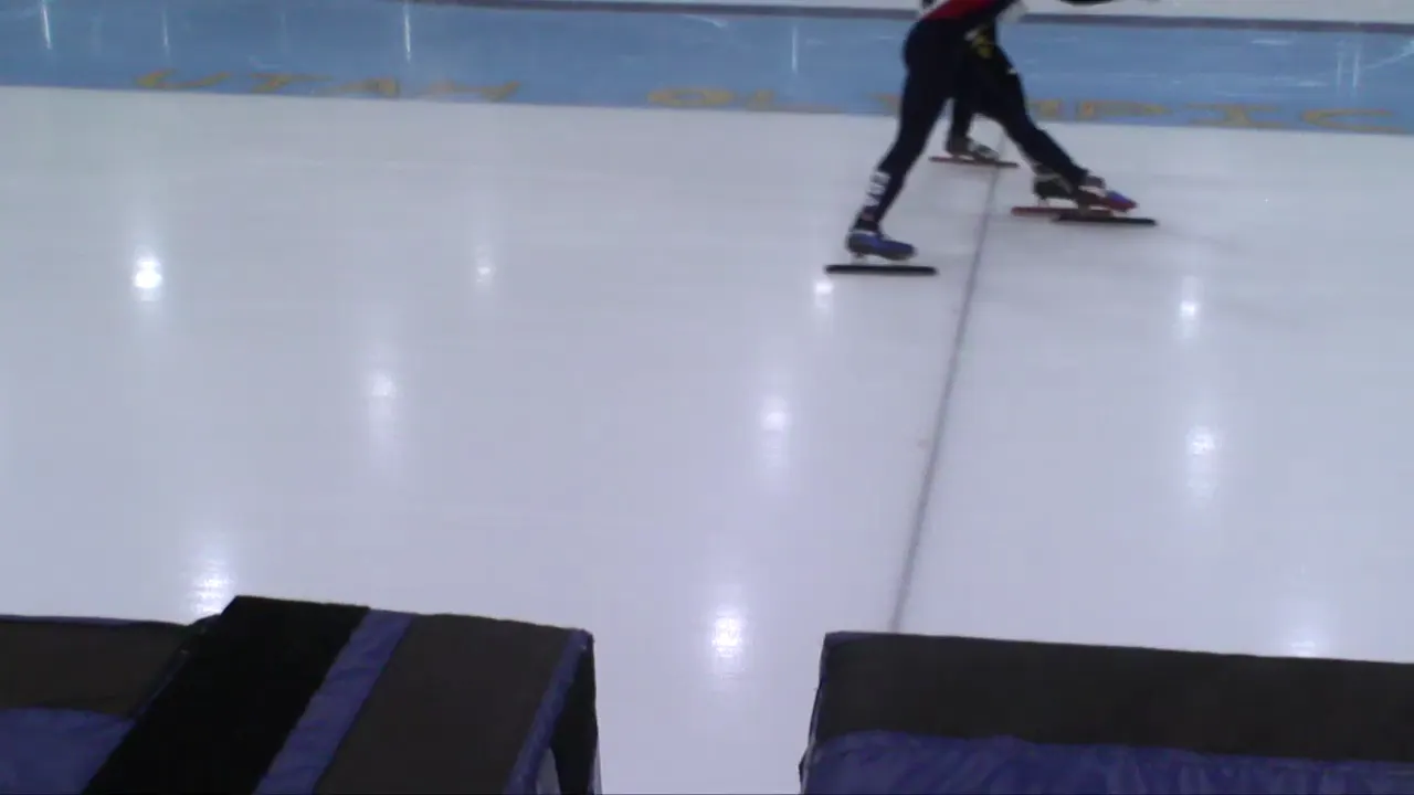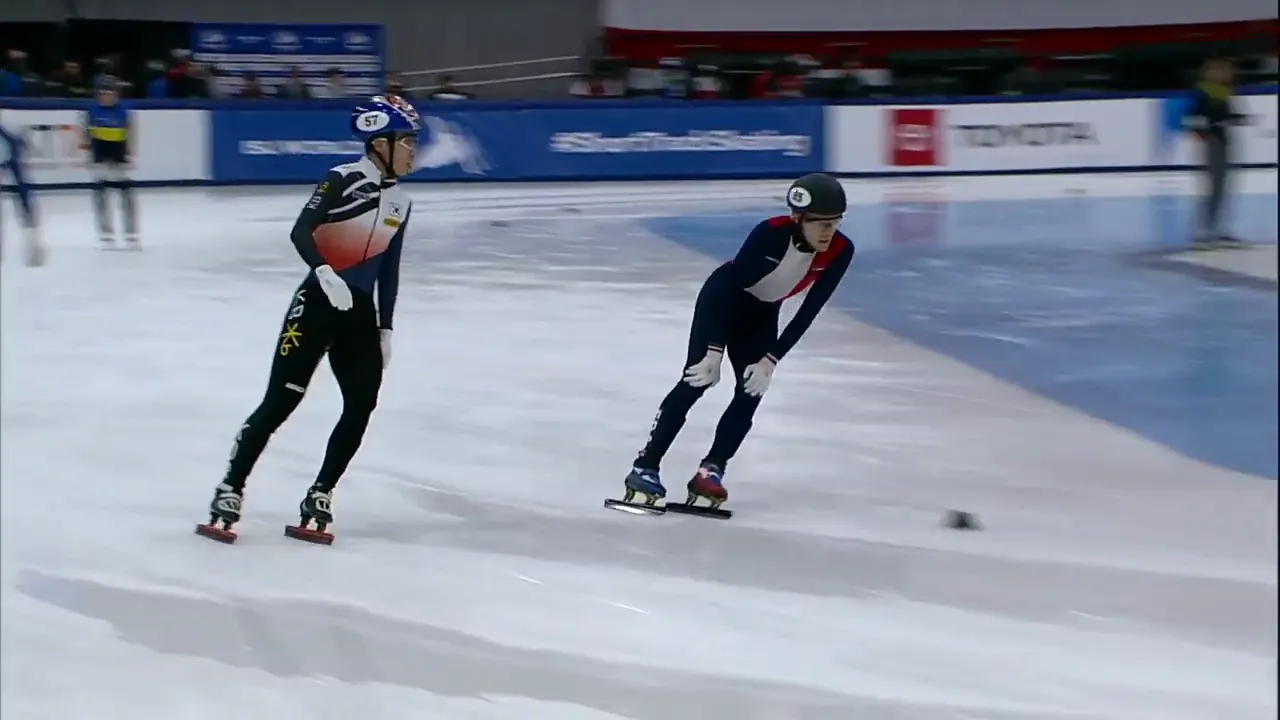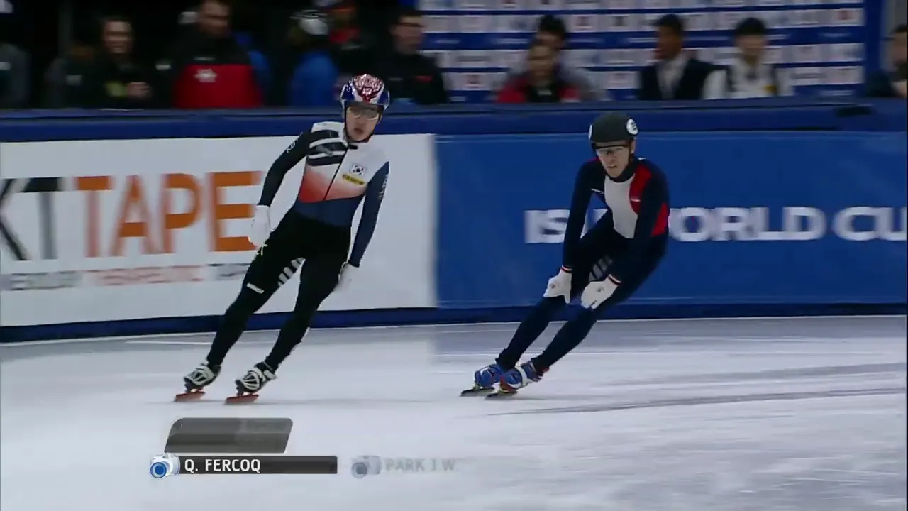 아웃코스로 달리는 페르코크 선수와 박지원 선수.