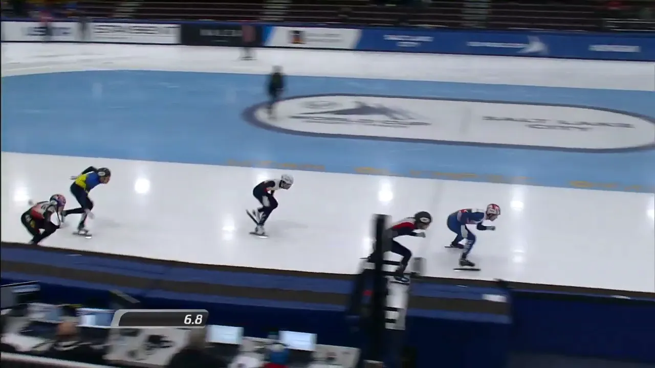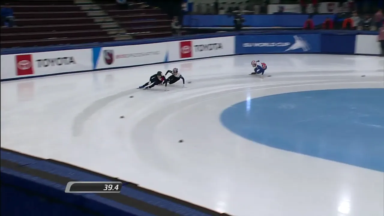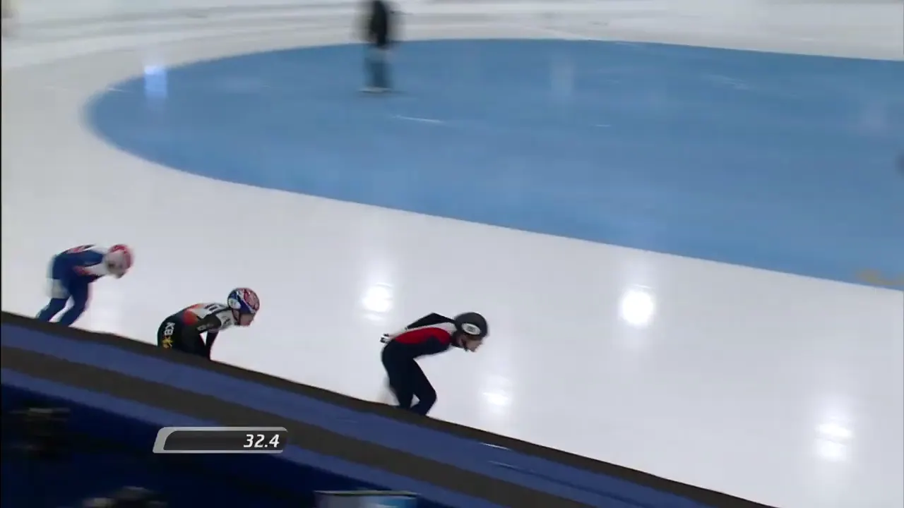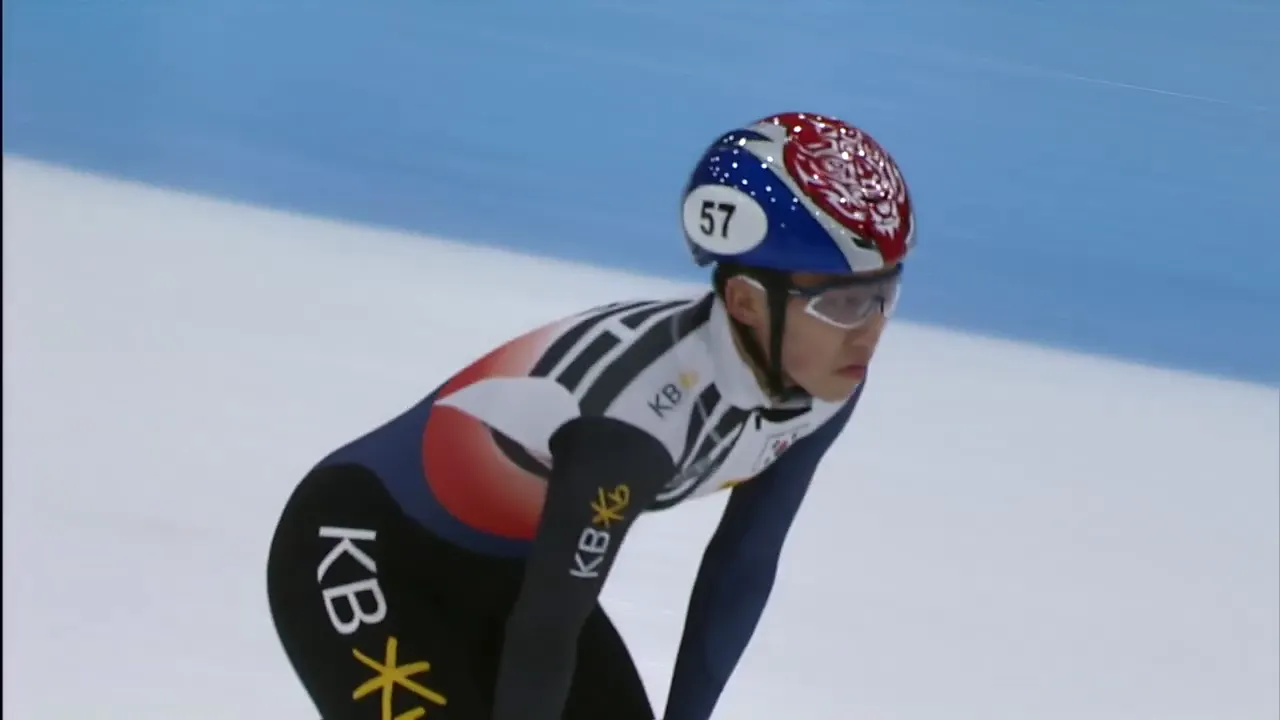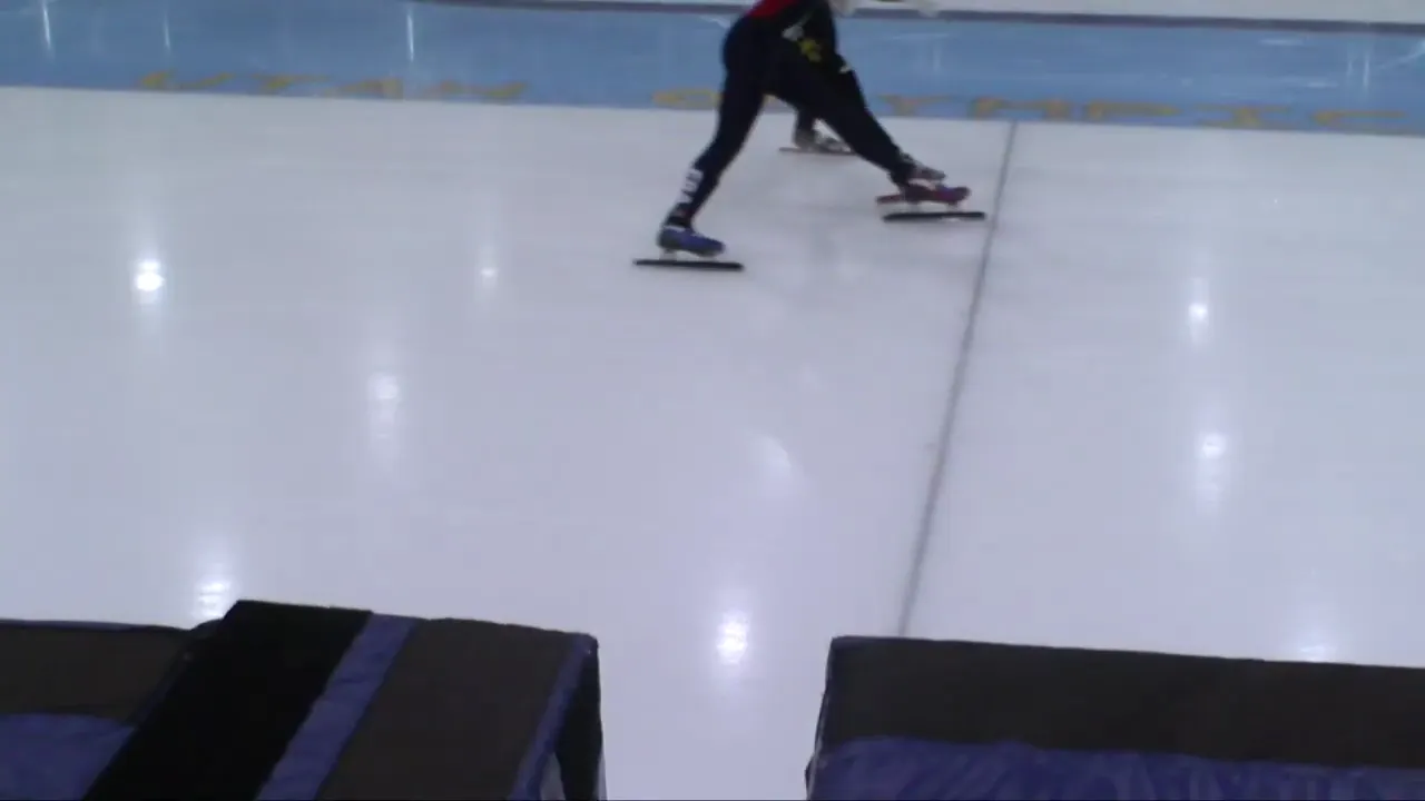 아웃코스로 달리는 페르코크 선수와 박지원 선수.