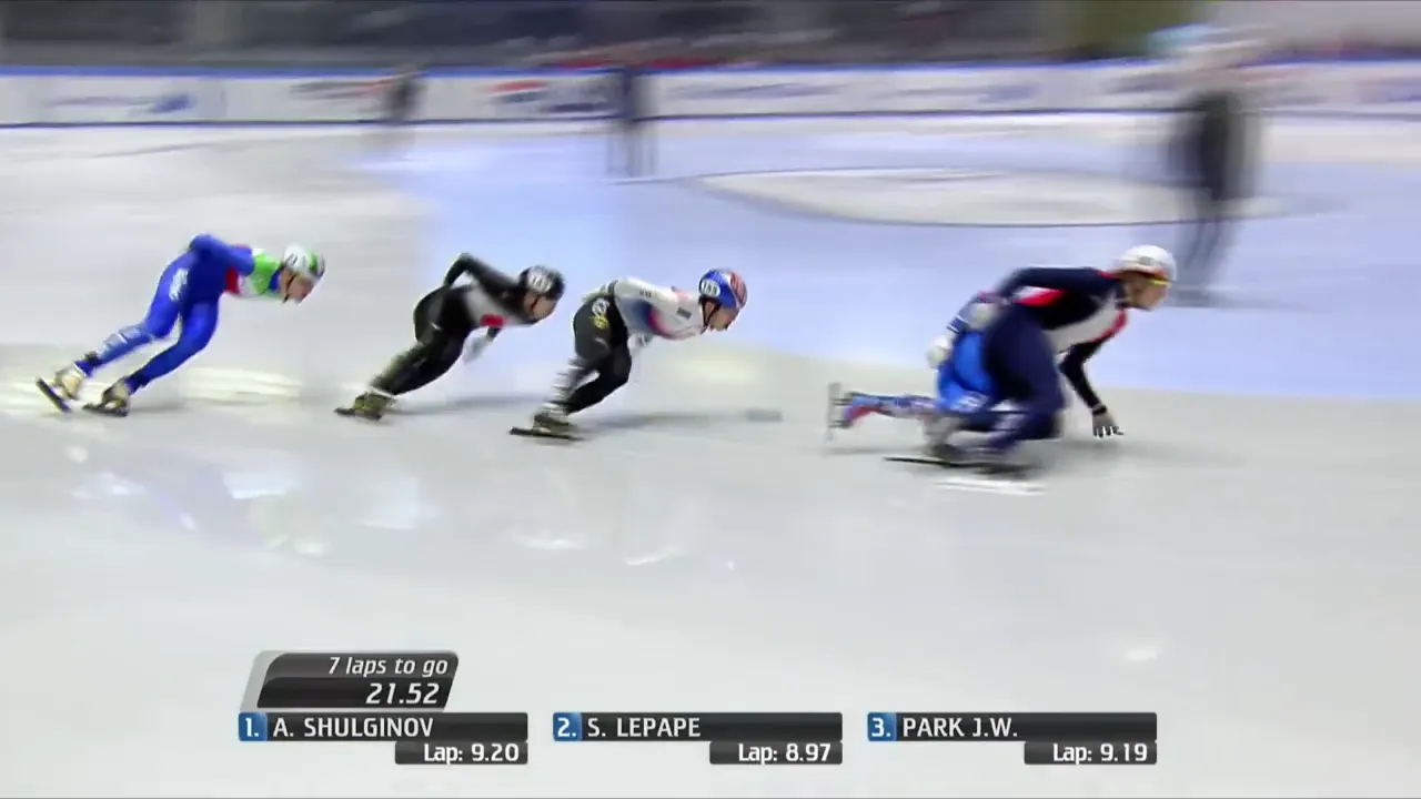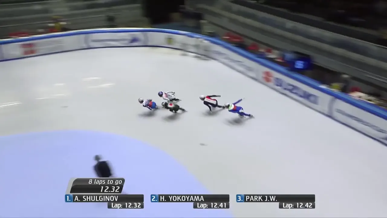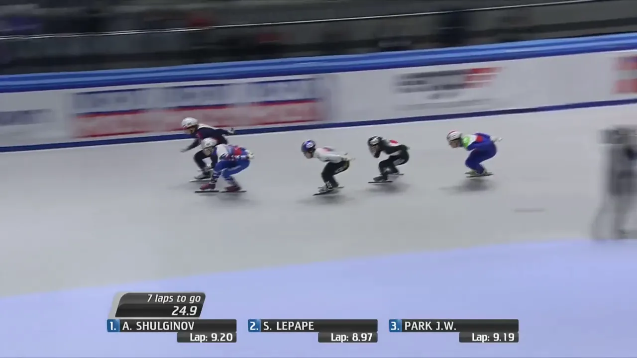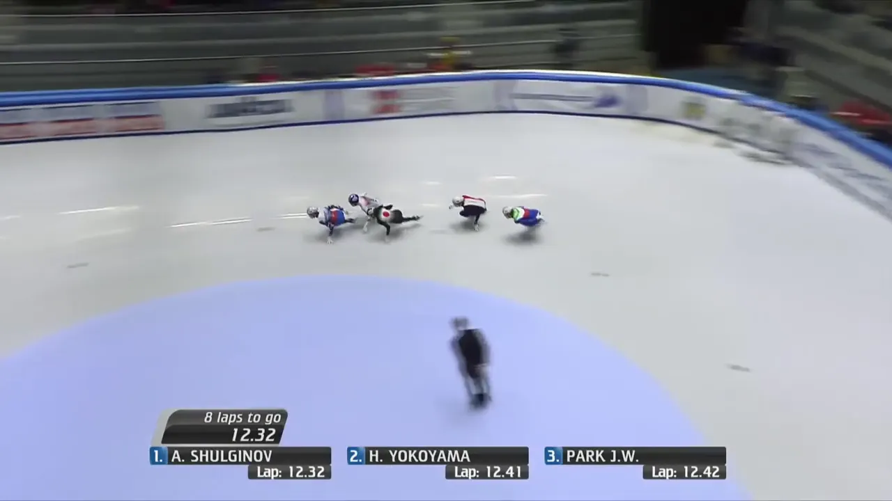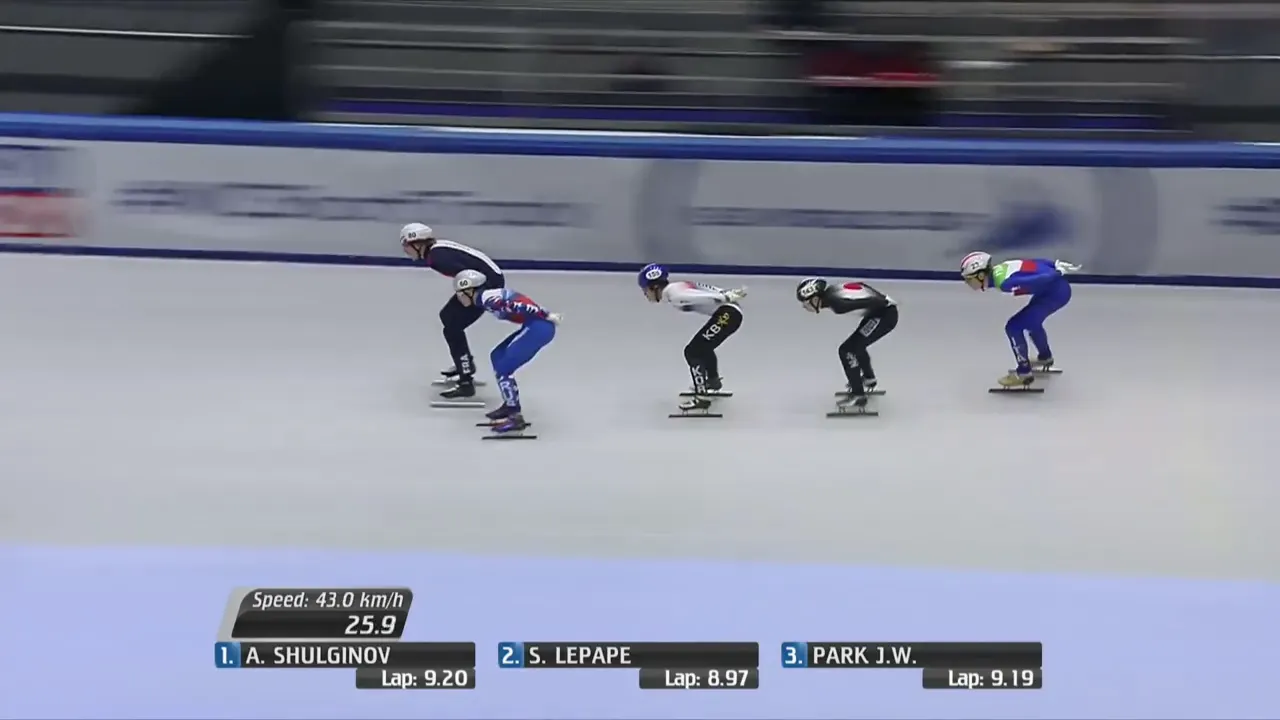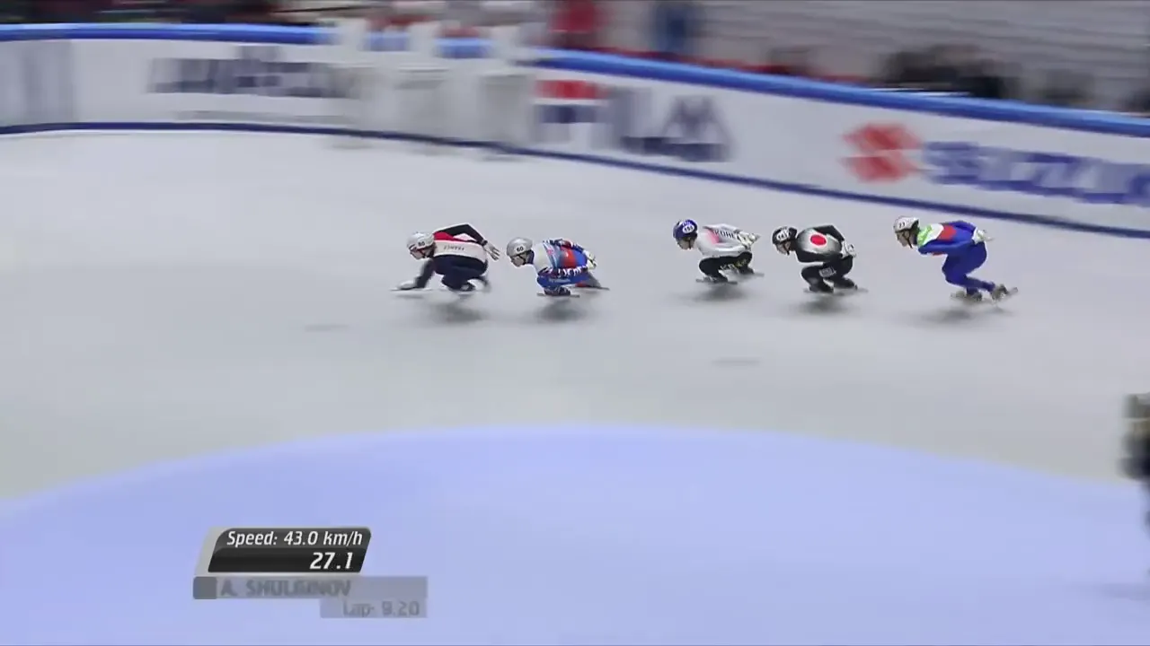 시작부터 아웃코스로 달려 선두에 자리잡은 슐리노프 선수.