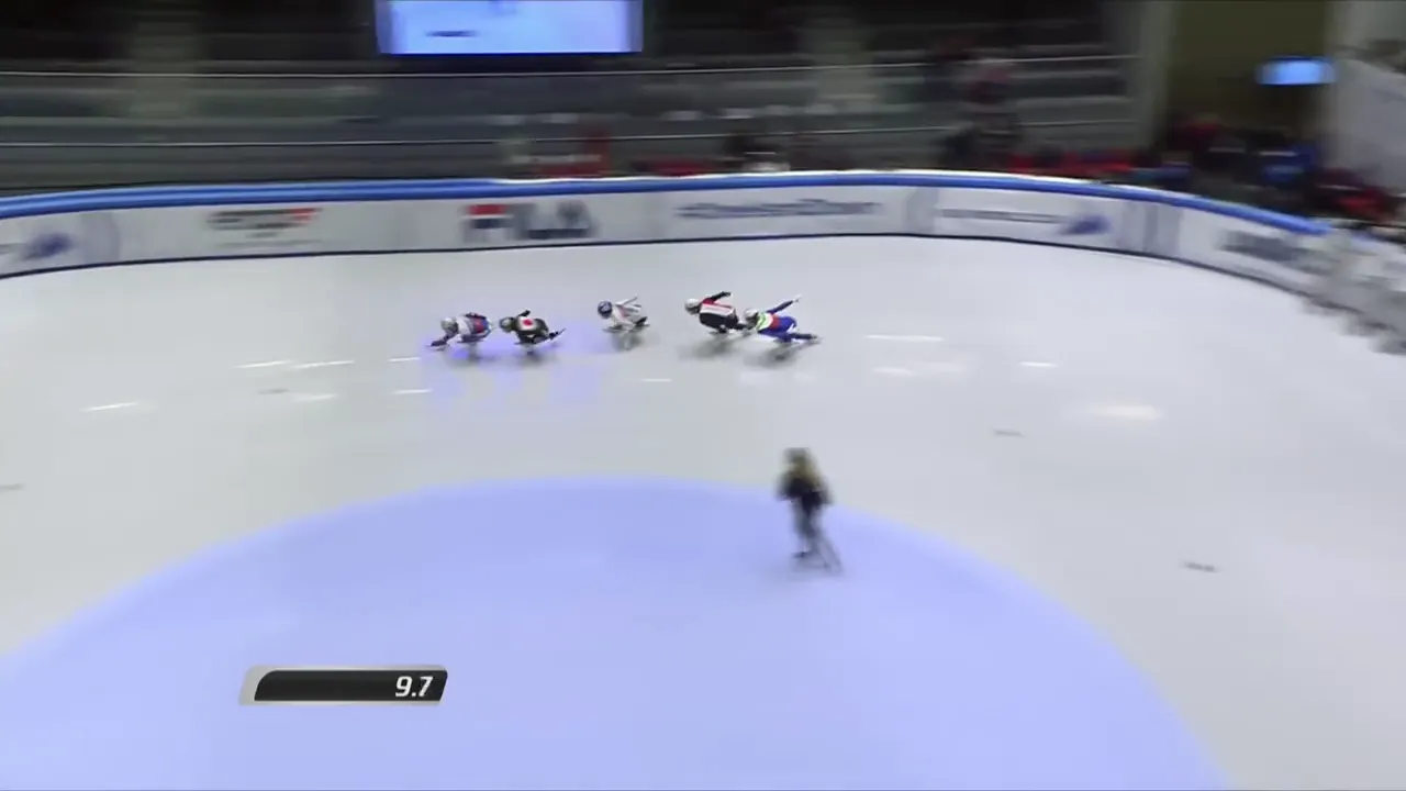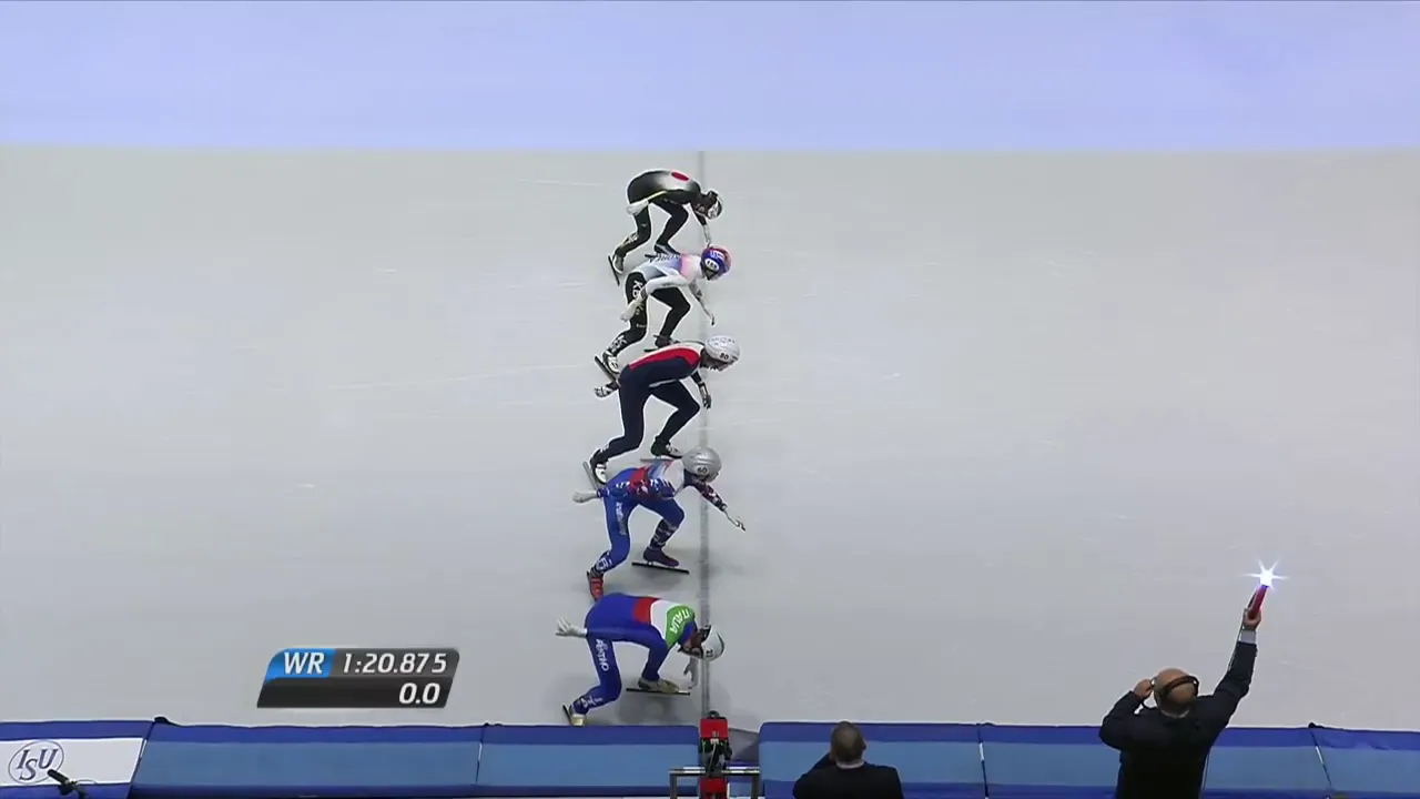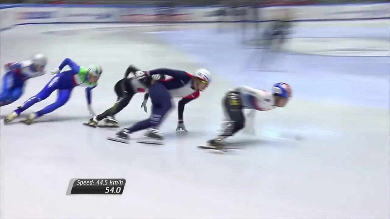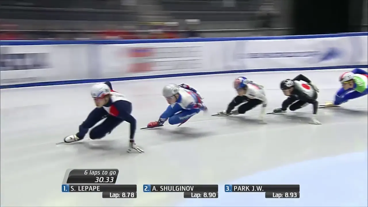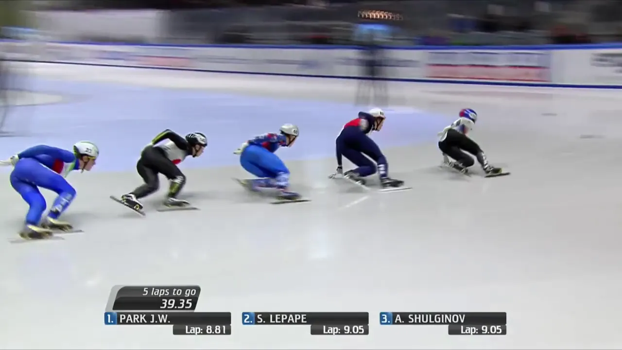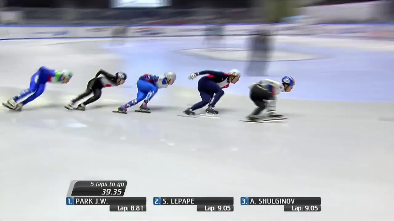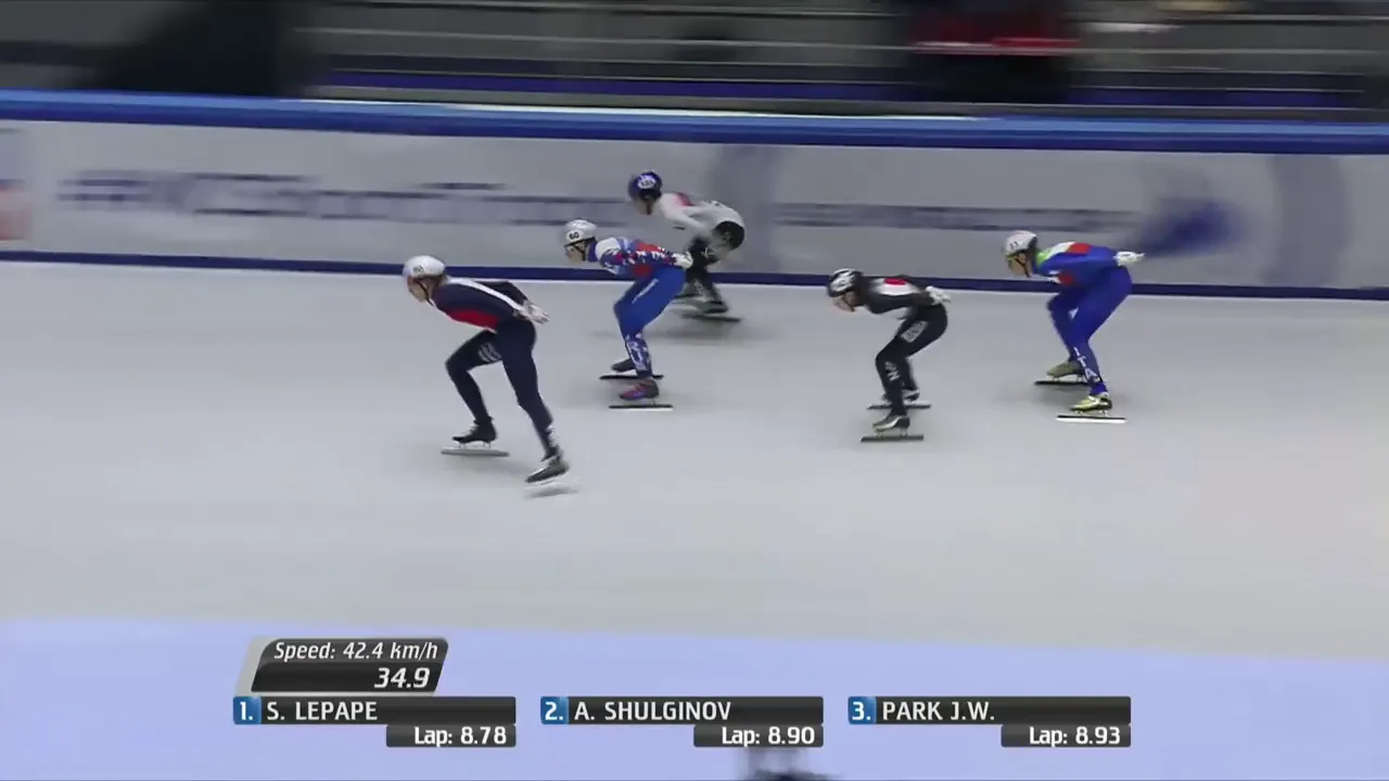 시작부터 아웃코스로 달려 선두에 자리잡은 슐리노프 선수.