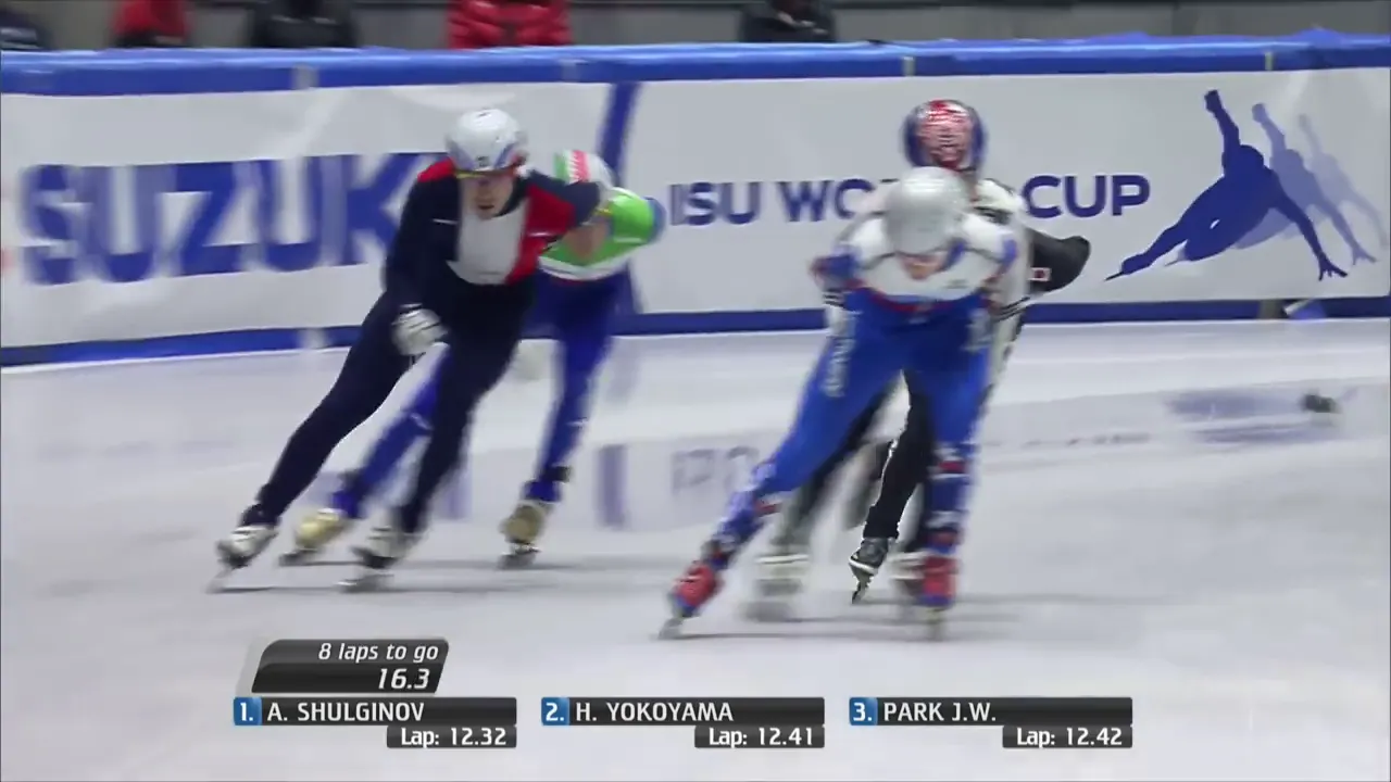 슐지노프 선수는 인과 아웃 코스 다 내줘서 후미권에 자리 잡았고요.