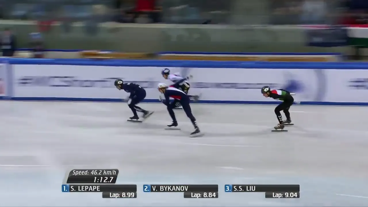 박지원 선수는 아웃코스 중이고, 산도르 선수는 인코스 중.